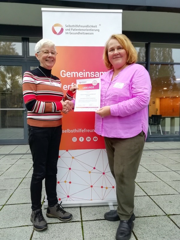 Die Auszeichnung „Selbsthilfefreundliches Krankenhaus“ verleiht das Netzwerk Selbsthilfefreundlichkeit und Patientenorientierung im Gesundheitswesen, wenn die Qualitätskriterien für Selbsthilfefreundlichkeit durch konkrete Maßnahmen im Krankenhaus umgesetzt werden. Dazu gehört das Hinweisen der Patienten auf die verschiedenen Gruppenangebote, eine enge Zusammenarbeit mit der lokalen Selbsthilfekontaktstelle, eine feste Selbsthilfe-Beauftragte im Krankenhaus als zentrale Ansprechpartnerin und das Unterstützen der Gruppen in der Öffentlichkeitsarbeit. Darüber hinaus tauschen sich die Selbsthilfe-Beauftragte und die Selbsthilfegruppen in regelmäßigen Qualitätszirkeln aus.